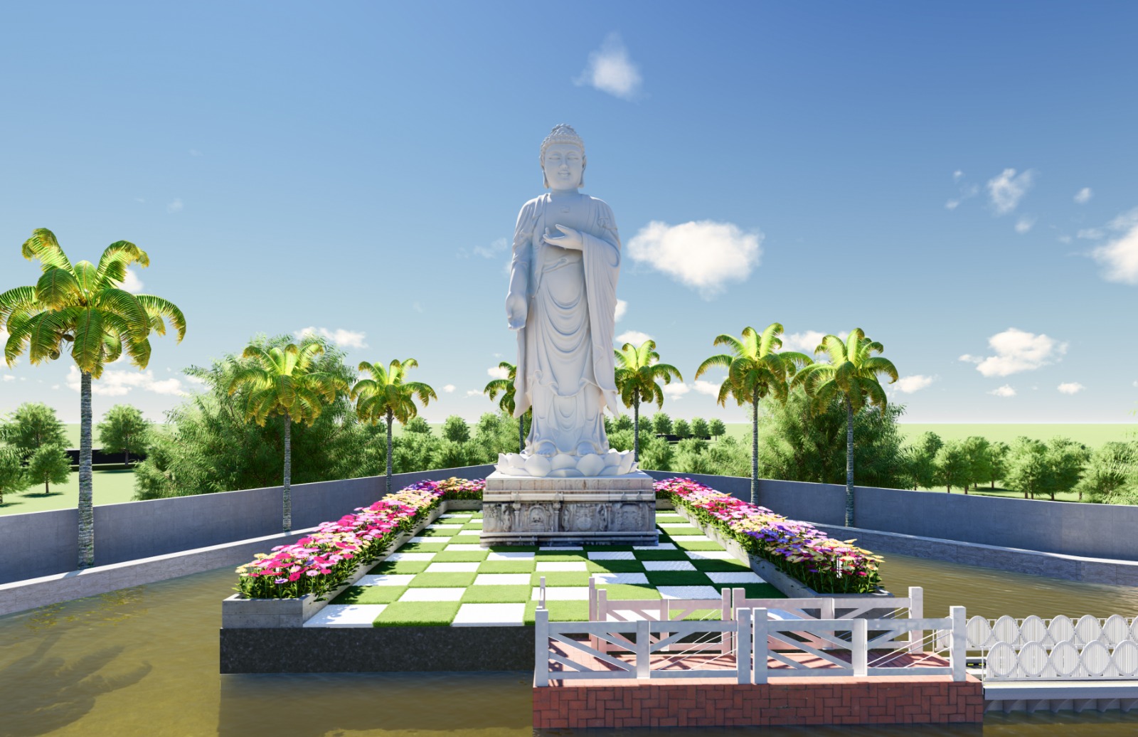 A 25-foot standing Buddha statue is located in Gadipat Lake,